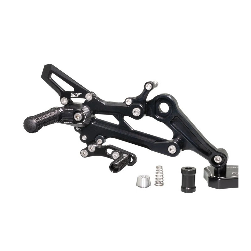Les commandes reculées ARP Racing Parts RXA07O-SBF sont un must pour les motards exigeants qui veulent gagner en contrôle, en ergonomie et en performance. Fabriquées en aluminium billet EN AW-7075 T6, ces rear sets offrent une résistance et une rigidité supérieures aux pièces OEM, tout en améliorant le feedback et la précision de pilotage, même dans des conditions extrêmes. Conçues avec une esthétique racing et un fini anodisé dur, elles protègent aussi contre les rayures et l’usure du temps.