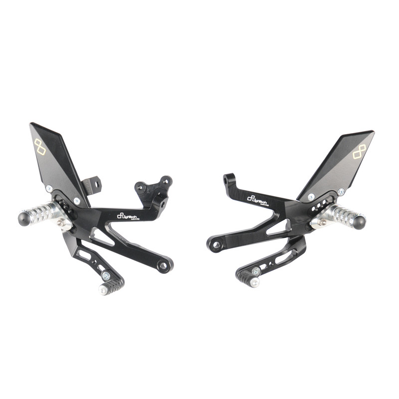 Commandes reculées réglables LighTech avec repose-pieds repliables Fabriqué en aluminium 7075 taillé dans la masse : garantie de rigidité hors-norme, assurance de sécurité et performanceFabrication monobloc : forte résistance, plus de rigidité, meilleur aspect et meilleur feeling pour chaque pilote“Track System” LighTech : 8 possibilités de réglage de position précises et rapides – uniquement 1 vis à manipulerCommandes reculées dotées de nombreux avantages techniques, d’un design unique et très attractif Caractéristiques techniques : Repose-pied, sélecteur et pédale de frein réglableRepose-pied repliable