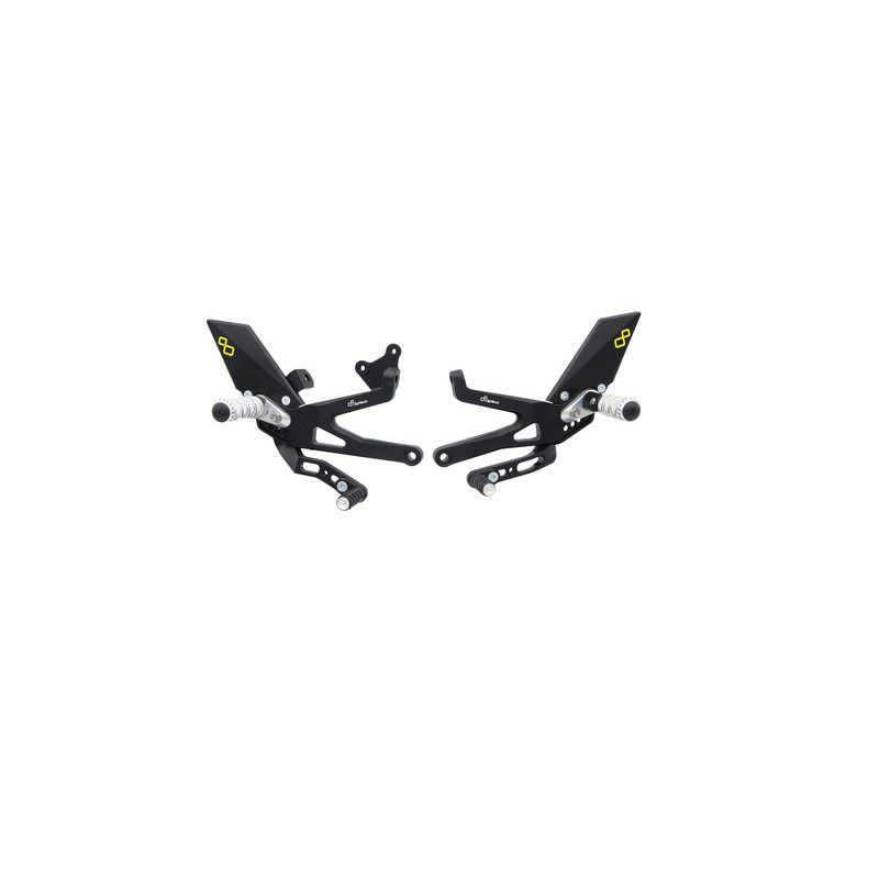 Commandes reculées réglables LighTech avec repose-pieds fixes Fabriqué en aluminium 7075 taillé dans la masse : garantie de rigidité hors-norme, assurance de sécurité et performanceFabrication monobloc : forte résistance, plus de rigidité, meilleur aspect et meilleur feeling pour chaque pilote“Track System” LighTech : 8 possibilités de réglage de position précises et rapides – uniquement 1 vis à manipulerCommandes reculées dotées de nombreux avantages techniques, d’un design unique et très attractives Caractéristiques techniques : Embouts de sélecteur et pédale de frein réglablesRepose-pied fixe
