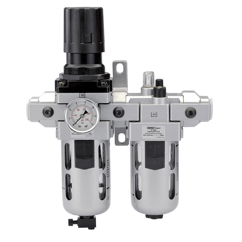 Ensemble complet de traitement d’air, recommandé pour les compresseurs d’une capacité supérieure à 200 L. Elimine l’humidité et les impuretés contenues dans le réseau d’air comprime tout en lubrifiant l’air pour ne pas endommager vos outils pneumatiques.Livré avec support de fixation murale et manomètre. Pression: 0 a 10barsFiletage entrée/sortie: 1/2"