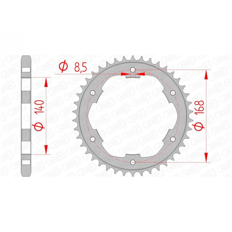 • Les couronnes acier AFAM sont usinées dans de l’acier type C45, puis traitées par trempage afin d’augmenter leur dureté, et ainsi leur longévité. La qualité d’usinage et la précision du taillage font d’AFAM une référence mondiale incontournable pour les éléments de transmission moto. Couronne acier Finition et qualité haut de gamme Contribue à la longévité de votre kit chaine