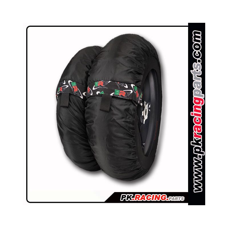 Équipées de 2 élastiques elles épouseront parfaitement vos pneus et jantes garantissant ainsi encore une fois une chauffe très précise de vos pneumatiques et évitant le maximum de perte de chaleur.