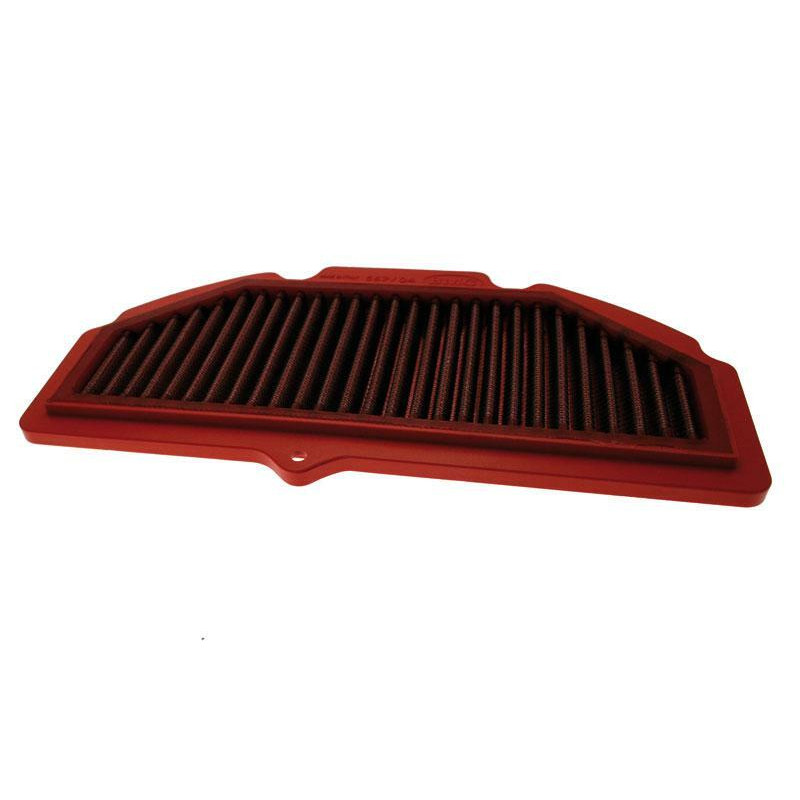 Consacrés par les succès obtenus dans les compétitions les plus prestigieuses du monde, les filtres à air BMC sont reconnus aujourd’hui comme des produits de référence en matière de performance, de fiabilité et de qualité de fabrication. Les caractéristiques d’un filtre coton se résument simplement: perméabilité, filtration, rétention, ré-utilisation Perméabilité: offrir le minimum d’obstacle pour un flux d’air maximal Filtration: empêcher les corps étrangers de pénétrer Rétention: retenir les particules solides Réutilisation: les filtres coton peuvent être ré-utilisés grâce aux produits d’entretien spécifiques BMC La gamme racing est la version piste pour les modèles de motos les plus répandues. De forme identique à la version «Performance» mais avec un matériau de filtration différent pour augmenter encore le flux d’air (+25%), sans perdre ses propriétés. La gamme Racing est identifiable par la ligne orange traversant le corps de filtration. Usage compétition sur circuit fermé uniquement